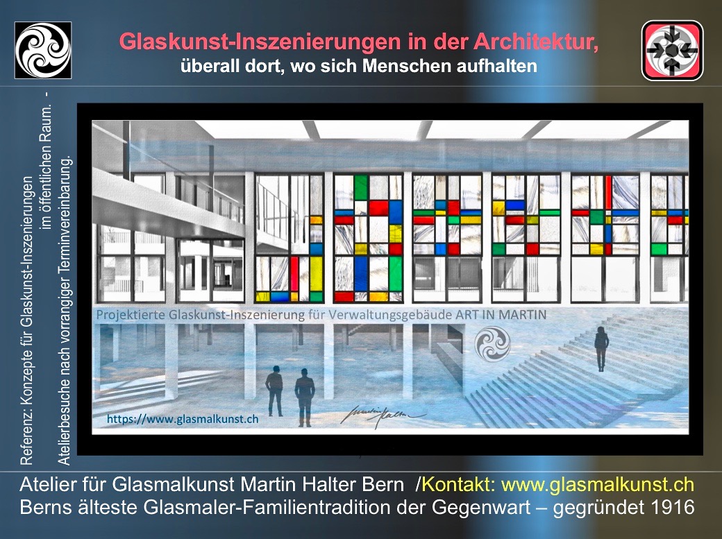 Glasmalerei-Werkstatt: Glasdesign mit Farben im Licht - Atelier Martin Halter CH-3013 Bern